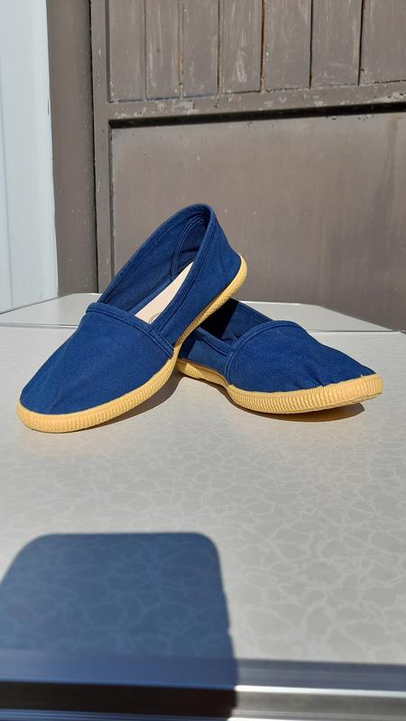 Женские мокасины в идеальном состоянии, на бирке 39 размер, но по факту - 37 (длина стельки 24,5 см), цвет синий. Верх: текстиль, бавовна 100% Подошва резинова Хорошая дышащая и легкая обувь для лета. Сделаны в Испании