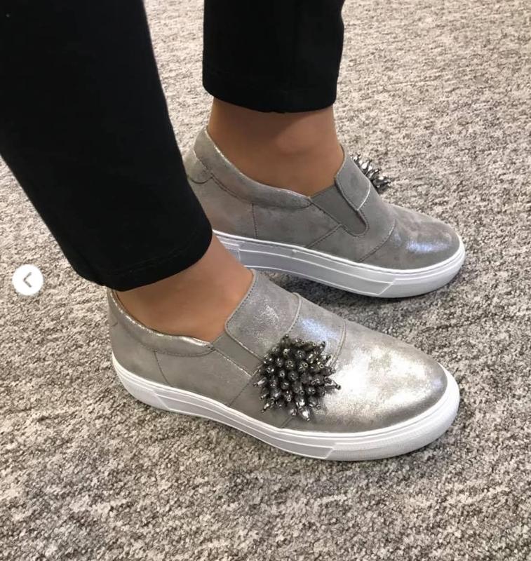 Срібні мокасини на високій платформі з квіткою Gabor Устілка 26
