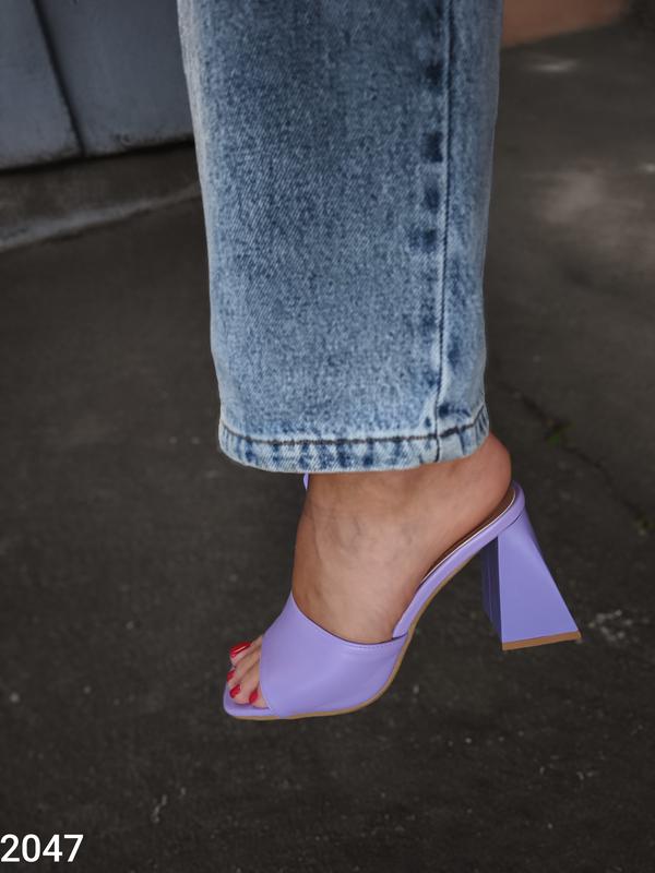 НОВИНКА Шльопанці жіночі на каблуку Код: 2047 Колір: бузковий Матеріал: еко-шкіра Каблук 8см + 1 см підошва Розміри 36, 37, 38, 39, 40 36 -23.5 -23.8 нерівномірно пофарбовані підбори, ціна 400грн 37 -24.5 - неохайно приклеєний каблук, ціна 400грн 38 - 25 39 - 26см ❌