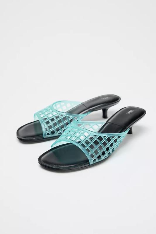35-42 Туфли-мюли на каблуках «китен». Широкий передний ремешок с прорезиненным эффектом контрастного цвета. Широкие каблуки. Закругленный носок. Высота каблуков: 4 см