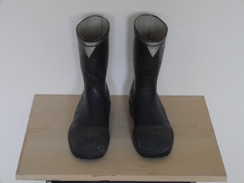 Чоботи гумові-резинові з металевим захистом підошв і носків. 43 розмір.Швейцарія Довжина стельки-28.3 Ширина стельки-10.3 Каблук-3.8 Висота-25 Вага-2.8 кг