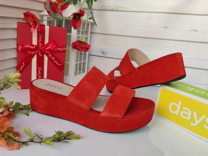 Нові шльопанці на платформі Ecco Plateau Оригінал з Англії разм.41. устілка 26.5см Колір — морквяно-червоний Верх виготовлений із натуральної замші, підкладка — натуральна шкіра. Устілка також шкіряна (для забезпечення антиковзного ефекту та комфортного носіння втечення дня). Носочок трішки піднятий вгору для того, щоб забезпечити плавний перекат. Підошва 2х — компонентна, висока На одному з ремінців є вставляємо з гумки, щоб максимально комфортно було підійманню ПОВНА СТОИМІСТЬ 3199грн АКЦІОННА ЦЕНА 2100 грн