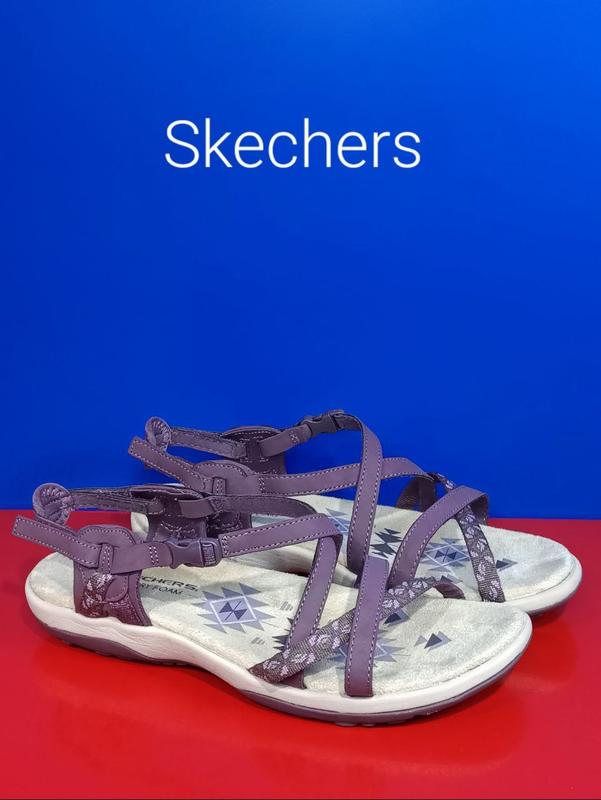 Жіночі сандалії Skechers Reggae Slim Оригінал. Art.N 40955 Нові, вітрина пара. Р.41 устілка від краю до краю 27 см на стопу 26-26.5 см. Виробник-В'єтнам. Легкі Skechers-сандалі! Синтетичний матеріал Внутрішній текстиль М'яка устілка з піни з ефектом пам'яті Надійна підошва Регульована застібка-липучка ззаду, знімна Пластикова пряжка зверху