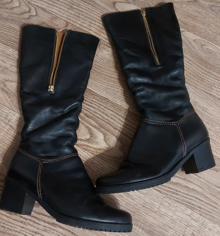 У гарному стані, розмір -38, висота каблука-6см, ширину гомілки можна регулювати блискавкою. Висота сапога-35 см, обхват в найширшій частині-37.5+додаткові 4.5см.