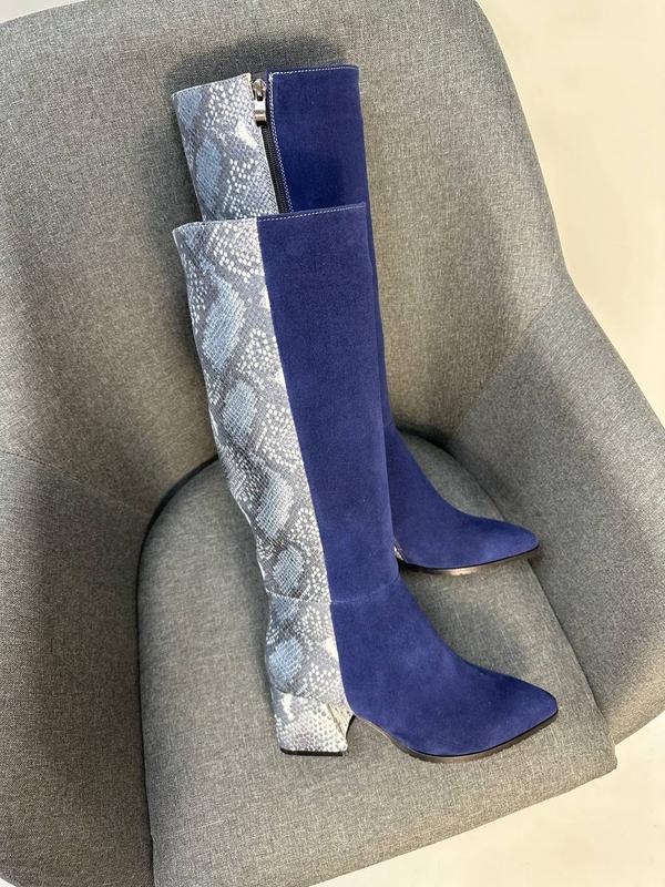 Чоботи з ексклюзивної шкіри + замша синя колір на вибір