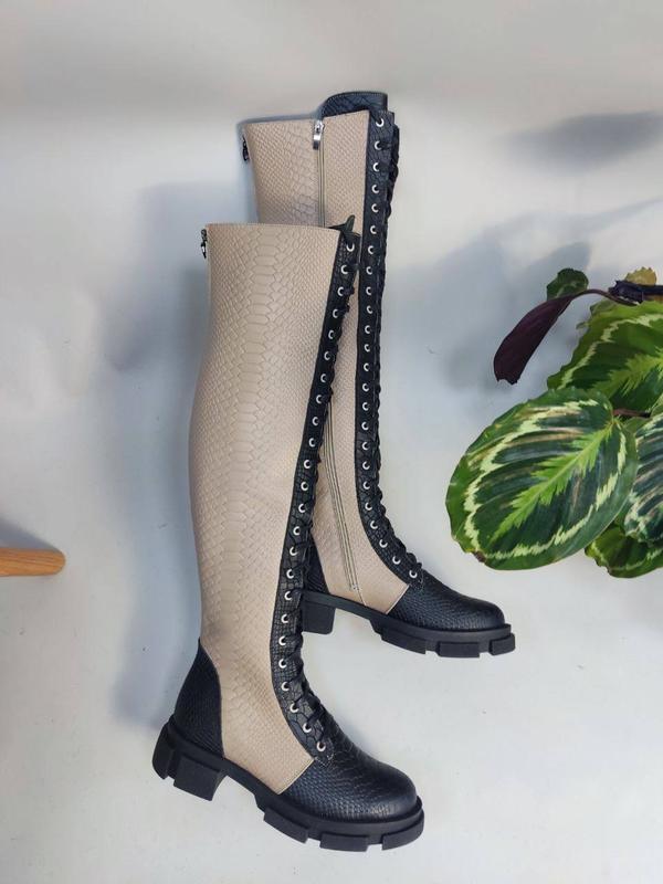 Ручна робота! високі чоботи ботфорти шкіряні чорні з бежевим колір на вибір
