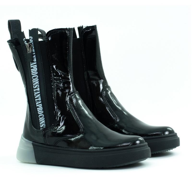 Чоботи CONSTANTA 1794 Чудові чоботи підкреслять стильний дитячий образ. Дитячі чоботи будуть не тільки красивими, але й максимально комфортними. Чоботи CONSTANTA 1794 не натирають, позаяк чоботи зроблені з якісних натуральних матеріалів. Саме тому CONSTANTA 1794 можна вважати взуттям із підвищеним комфортом. Матеріали та кольори Дитяча пара взуття 1794 має такі особливості: - Виробник — CONSTANTA. Це відомий виробник взуття, який давно представлений на ринку України. - Країна — Україна. - Сезон — Зима. Стійке та тепле взуття. - Колір товару — Чорний. - Матеріал підкладки — Вовна. - Матеріал верху - Лак. - Висота каблука — 3. - Висота гомілки — 16.