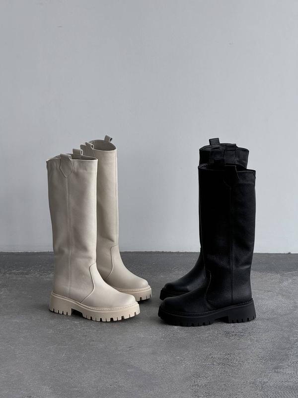 ПЕРЕД ОФОРМЛЕННЯМ ЗАМОВЛЕННЯ ОБОВ'ЯЗКОВО УТОЧНЮЙТЕ НАЯВНІСТЬ ПОТРІБНОГО РОЗМІРУ ‼️ Код 11507, колір: СЛОНОВА КІСТКА Код 11508, колір: ЧОРНИЙ Чоботи єврозима/демі НАТУРАЛЬНА ШКІРА (флотар) всередині: хутро (у складі 40% вовни до щиколотки) байка по всій довжині; демі- байка позаду зверху є резинка блискавка до середини висота від п'яти: 38,5 см підошва: 3 см/5 см Виробництво - Україна У разі відсутності потрібного розміру, доступні під замовлення з 36 по 41 Обхват гомілки 36 гомілка до 36 см 37 гомілка до 36,5 см 38 гомілка до 37,5 см 39 гомілка до 38,5 см 40 гомілка до 39 см 41 гомілка до 39,5 см 36= 23,5 см 37= 24 см 38= 24,5 см 39= 25.5 см 40= 26 см 41= 26,5 см Вага 36р = 1 кг 170 г