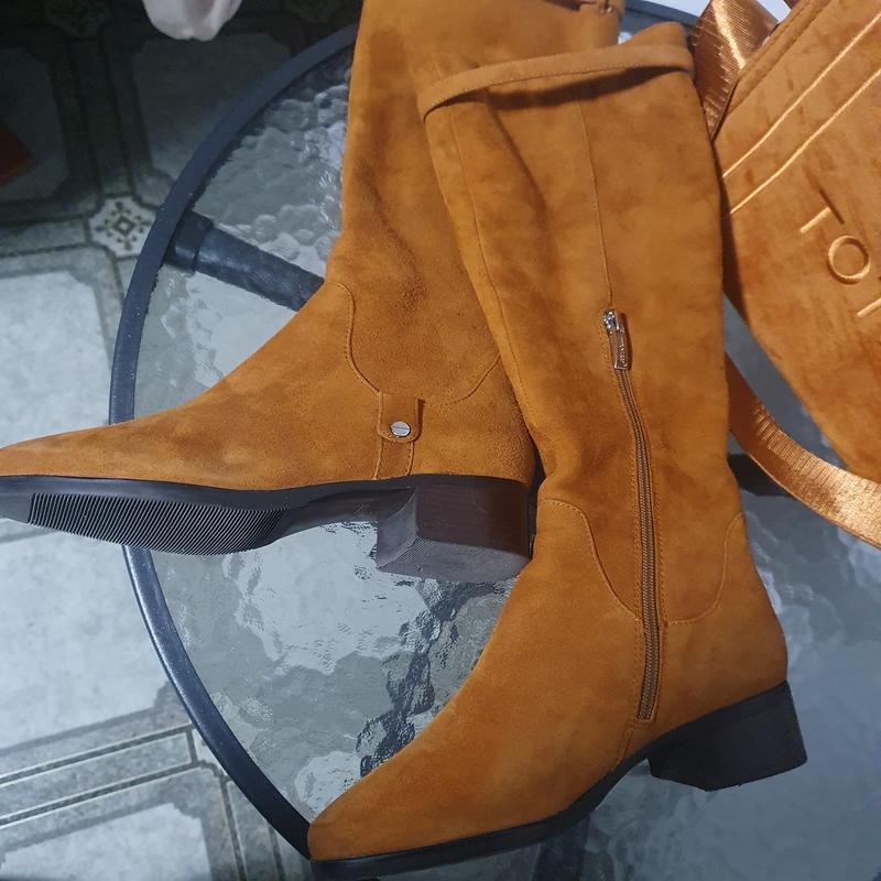 . Натуральний замш. Демісезон. Розмір на бирці 37. Садяться 37,37.5,38. Халява на вузьке халяво ПЗ 17 см вгорі, висота від підбора 37 см. висота підбора 4 см. Устілка 24/24,5 Стан чудова. Без видимих нюансів. Ціна адекватна.