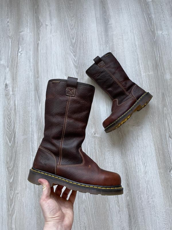 DrMartens Belsay Womens Pull On Work Boots UK 6 | EU 39 Belsay — це функціональні жіночі черевики, призначені для щоденного використання та роботи. Виготовлені з міцної шкіри промислового класу, ці черевики з високою халявою доповнені контрастними жовтими швами на верхній частині та рант. Вони мають устілку SoftWair для комфорту та міцну підошву, що не ковзає. Устілка SoftWair з пінопласту з ефектом пам'яті забезпечує комфорт з першого кроку. Industrial Bear — це м'яка, еластична шкіра з важким масляним покриттям і зернистою текстурою, яка з часом стає ще кращою. Мы оделі з підошвою Goodyear-welted термозварені при температурі 700 °C і посилені нашою фірмовою швом.