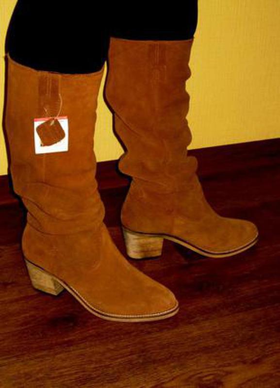 замшеві чоботи PULL & BEAR,раз 40 по устілці 26см напівобхват 19-19.5 см,на фото обхват ноги 40см