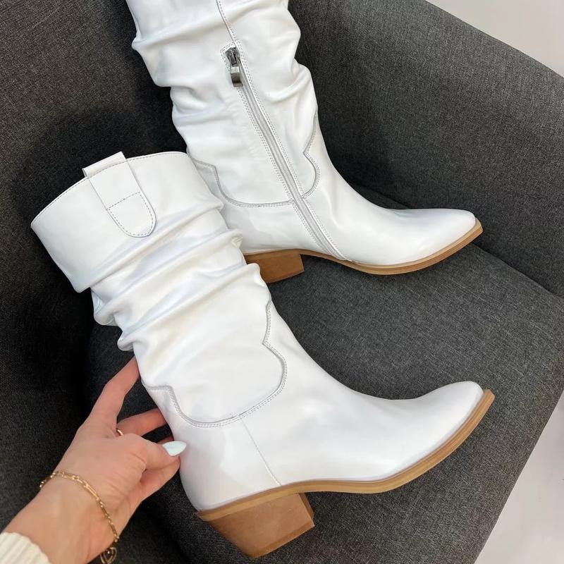 Ексклюзивні козаки з натуральної італійської шкіри білі