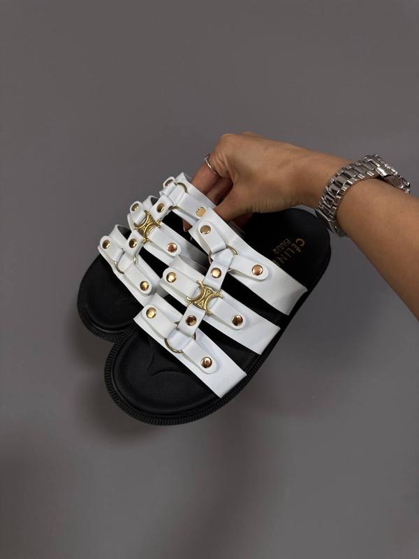 CELINE TIPPI SLIDES WHITE / BLACK ☺️Артикул: 1281 ☺️Матеріал: шкіра, текстиль ☺️Виробник: Туреччина 🇹🇷 ☺️Розміри: 36-41