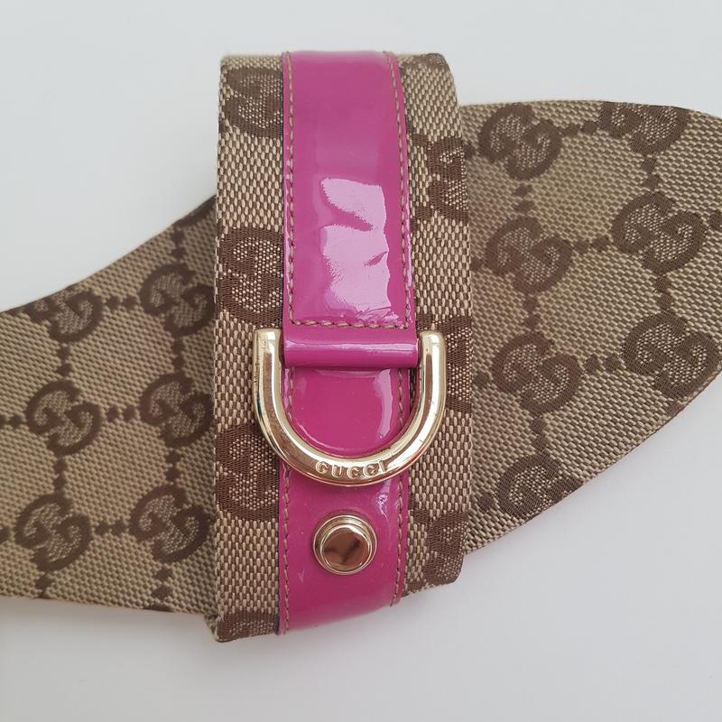 Бежеві мюли з відкритим носком від Gucci з монограмою Horsbit. ☝️ Оригінал! Виробництво Італія Розмір 39,5 C Довжина устілки 26,5 см В дуже хорошому стані. В області п'яти є невеликі смужки . Ці дивовижні мюли від Gucci бежево/ коричневого кольору. Фурнітура золотого кольору з назвою бренду. Каблучок 1см Верх : текстиль /з вставками з шкіри Підошва: шкіра В НАЯВНОСТІ!