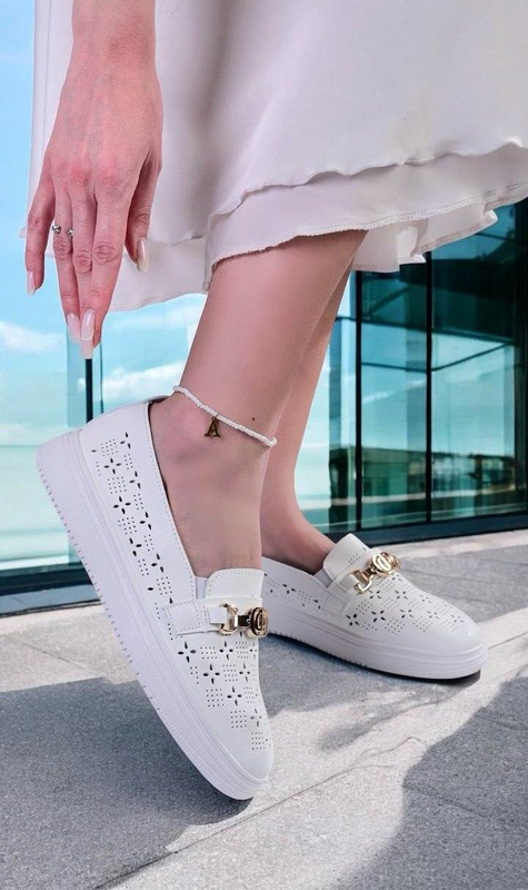 Матеріал штучна шкіра Розміри в наявності 37-24 см 38-24,5 см 39-25 см 40-25,5 см 41-26 см Стильні жіночі сліпони білого кольору — ідеальний вибір для весни та літа. Модель виготовлена з якісної штучної шкіри з перфорацією, яка забезпечує чудову вентиляцію та комфорт у спеку. Зручна підошва та м'яка устілка роблять взуття чудовим варіантом на щодень — чи то прогулянка, шопінг, чи то повсякденна робота. Декоративна металева пряжка надає моделі елегантного акценту, а сучасний дизайн легко поєднується з джинсами, штанами та платтями. Білий колір і перфорація додають взуттю легкості та легкості, роблячи їх універсальними для будь-якого образу. Брак шнурків забезпечує зручність і швидкість взування. Зверніть, будь ласка, увагу на спосіб вимірювання довжини устілки. Ми міряємо взуття всередині звичайним сантиметром, не виймаючи устілку назовні, тому виміряйте будь ласка, не ноги, а своє взуття всередині від шкарпетки до п'ятки Устілка буває приклеєна Іноді устілка буває не точно вирізана, занадто довга або коротка Допускається відхилення в замірі +/- 2-3 мм Під час купівлі взуття треба звертати увагу на те, для чого воно призначене (модельне, повсякденне, спортивне, для відпочинку або роботи). Також велике значення мають форма та висота каблука, які мають відповідати особливостям статури покупця Ви можете зробити обмін або повернення, пересилання завдяки покупця Наявність розмірів уточнюйте, швидко продаються Відсилання по повній оплаті або передбачено 150 грн. та інше накладеному платіжом Можливе повернення й обмін (доставка завдяки покупця) Доставка Новая почта и Укрпочта