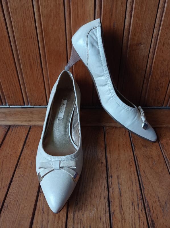 Пропонуємо Вашій увазі шикарні зручні туфельки з м'якої натуральної шкіри, бежевого кольору від відомого бренду ecco. розмір вказано 36 повномірний Дуже! зручна колодка, каблук кіттен хід або кошачий каблук дуже зручний на кожен день. підошва не ковзає, поліуретан, стан практично ідеал, пару раз взуті. Відсилаю Укрпоштою і Новою поштою примірка накладним платежем з передплатою або безпечною оплатою від шафи.