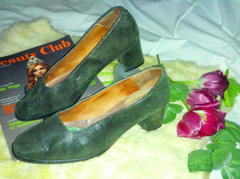 Зелені замшеві туфлі з лазерним напиленням,;39-40разм,устілка 26см,пр-во іспанія.