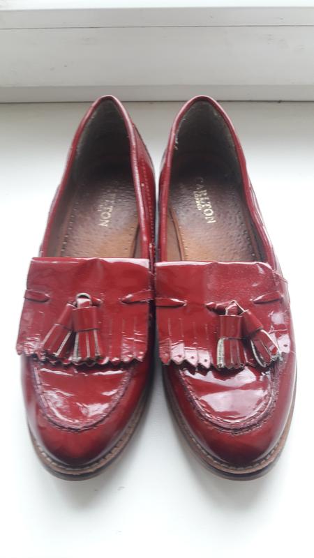 Вашій увазі пропонуються фірмені лофери червоно бордового кольору. В дуже гарному стані. Натуральна лакова шкіра. Прошиті (див фото 4,5). На ногу 24 см. За даними журнала Voge дуже актуальна модель і колір навесні 2025 року. Додаткова інформація і фото на запитання.