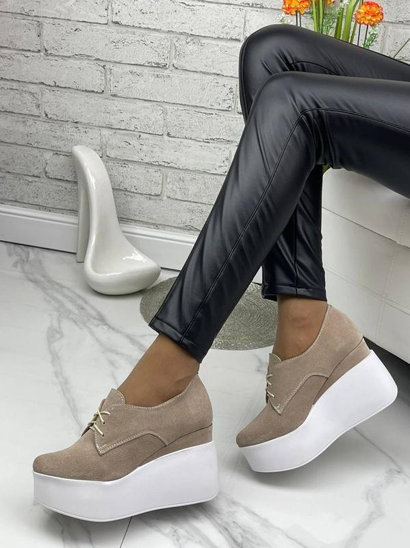 35-41рр туфлі-броги натуральна шкіра/замша на танкетці чорні, бежеві, червоні, блакитні, п...