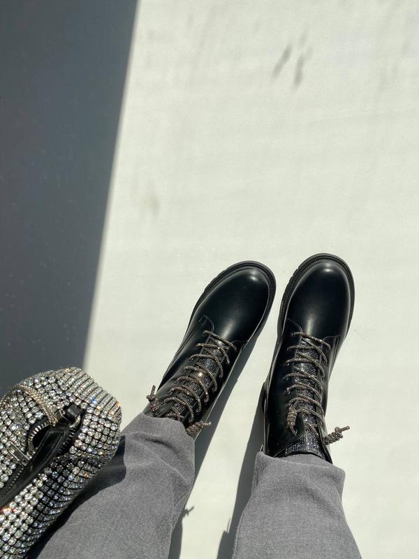 Ботинки Код 679 Колір: чорний Матеріал: єко шкіра В середені флис Висота 22 см Подошва 3 см 36-40 Розмір в розмір