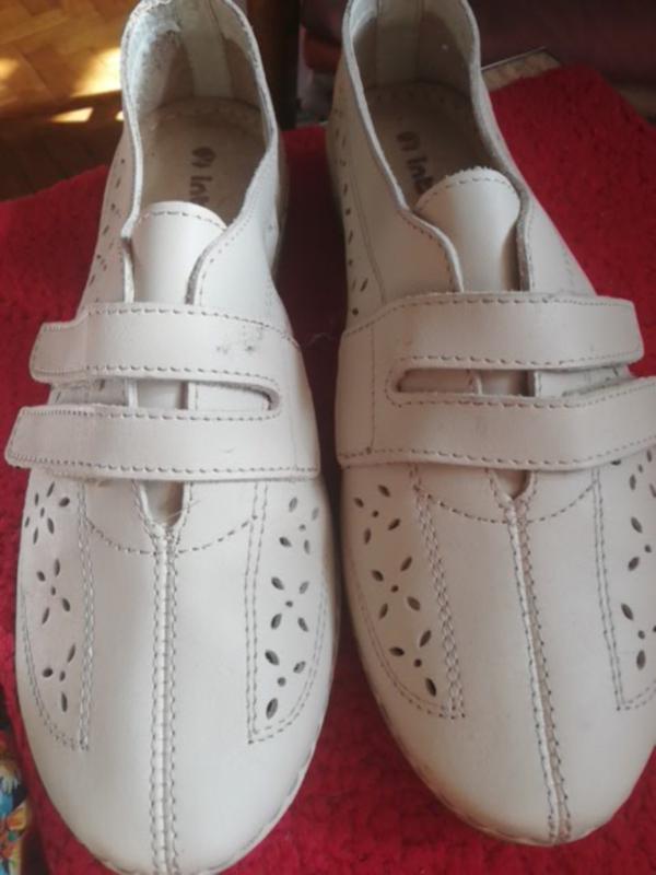 Inblu. Шкіряні нові туфлі. Колір молочний. Розмір 41 Без підкладки. Дуже м'які. Перфоровані. Зручна застібка--липучка. Довжина устілки 26,0 На середню ногу.