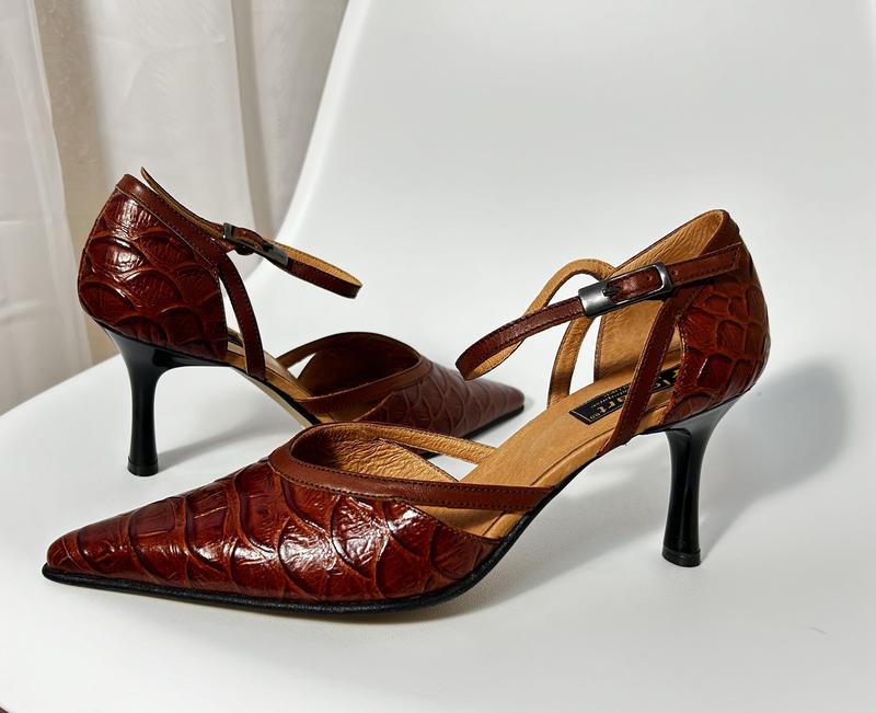 Продаються нові жіночі туфлі розмір 40. Виготовлені з якісних матеріалів, натуральної шкіри, забезпечують комфорт і стиль. Класичний дизайн підходить для різних випадків: як для щоденного носіння, так і для урочистих заходів. Легкі, зручні та елегантні. Відмінно сидять на нозі, мають стійку підошву, що додає зручності під час ходьби. Чудовий вибір для будь-якої жінки, яка цінує комфорт і якість. В комплекс входять запасні набійки.