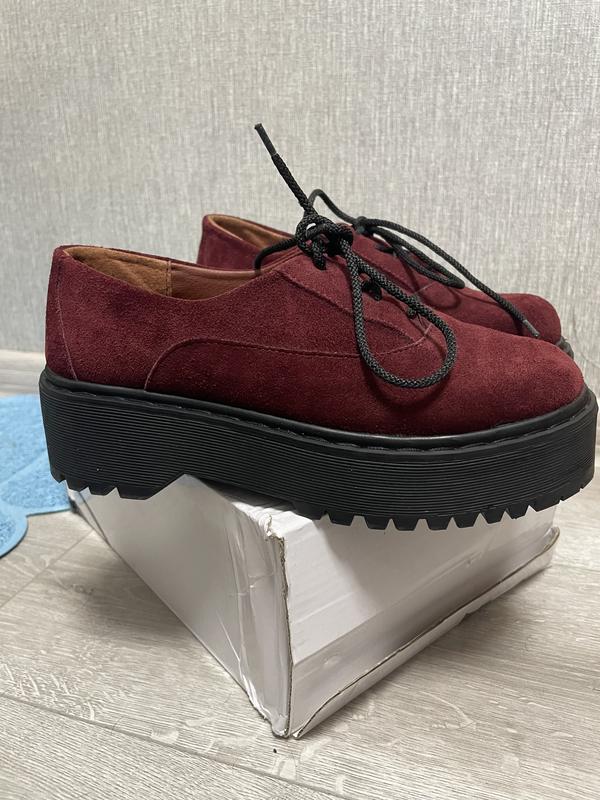 Туфлі оксфорди з натуральної замші в середині шкіра. 36 розмір. Одягались один раз. Довжина устілки 23,5.