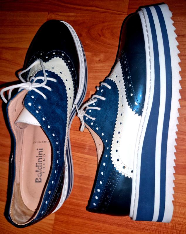 Біло сині лакові туфлі Baldinini Trend р38 нові шкіра оригінал устілка 25см ширина 9см платформа 4см не носились тільки примірялись