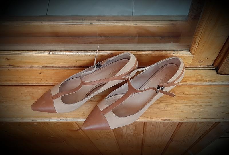 Красиві бежеві туфлі esprit з коричневою обробкою