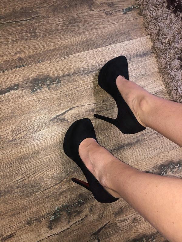 Чорні замшеві туфлі на високому (13 см) підборах, червона підошва. Фірма Lino Marano. виглядати дуже ефектно на ніжці . Дуже зручні. Зовні стан відмінний туфельок, нові набійки, навіть всі камінці на місці. З внутрішньої сторони (біля устілки) трохи відійшла тканину, але це взагалі не видно під час шкарпетки. Якщо потрібно додаткові фото, вишлю . Зверніть увагу і на інші мої оголошення