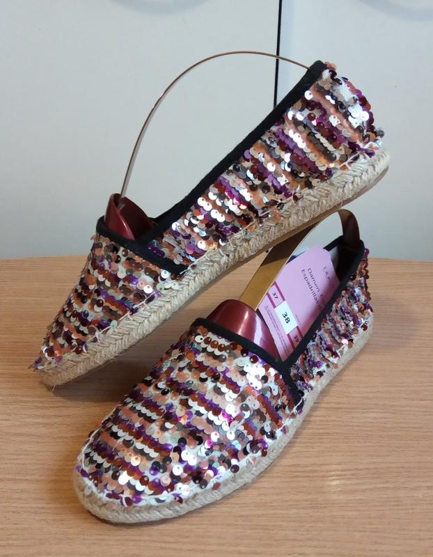 Очень стильные яркие балетки эспадрильи в разноцветных пайетках Blue Motion Германия, текстиль ширина подошвы в самом широком месте 9 - 9,5 см. (в зависимости от размера) Размеры в наличии: 37 р. = 23,7 см. по стельке 280 грн. 40 р. = 26 см. по стельке 300 грн. В наличии другие модели - смотрите все мои объявления:) ВАЖНО: отправка Укрпочтой под Вашу ответственность, подробности в разделе "Обо мне"