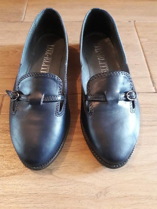 Шкіряні туфлі-човники 37 розміру ТМ Lux-Elite, вгору - натуральна шкіра, всередині також натуральна шкіра. По устілці 24,5 см, спереду звужуються. Стан ідеальний, одягнені один раз - не підійшов розмір