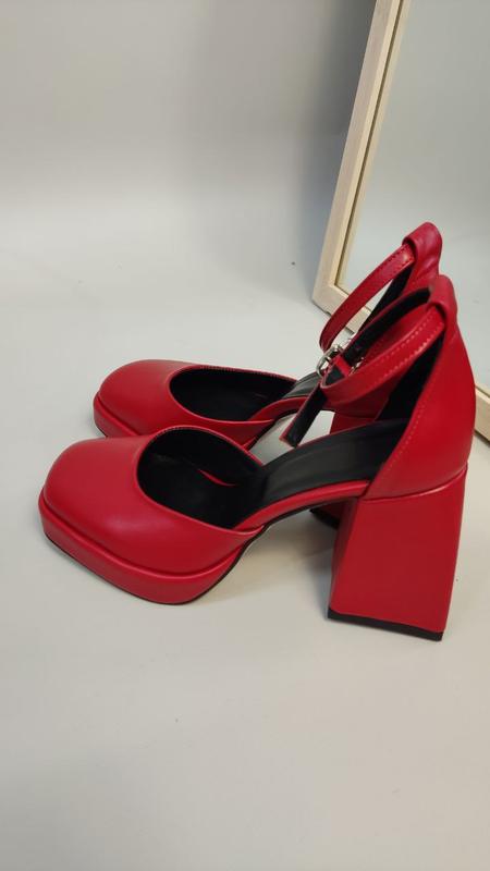 Ексклюзивні туфлі з натуральної італійської шкіри червоні на платформі і каблуці з ремінце...