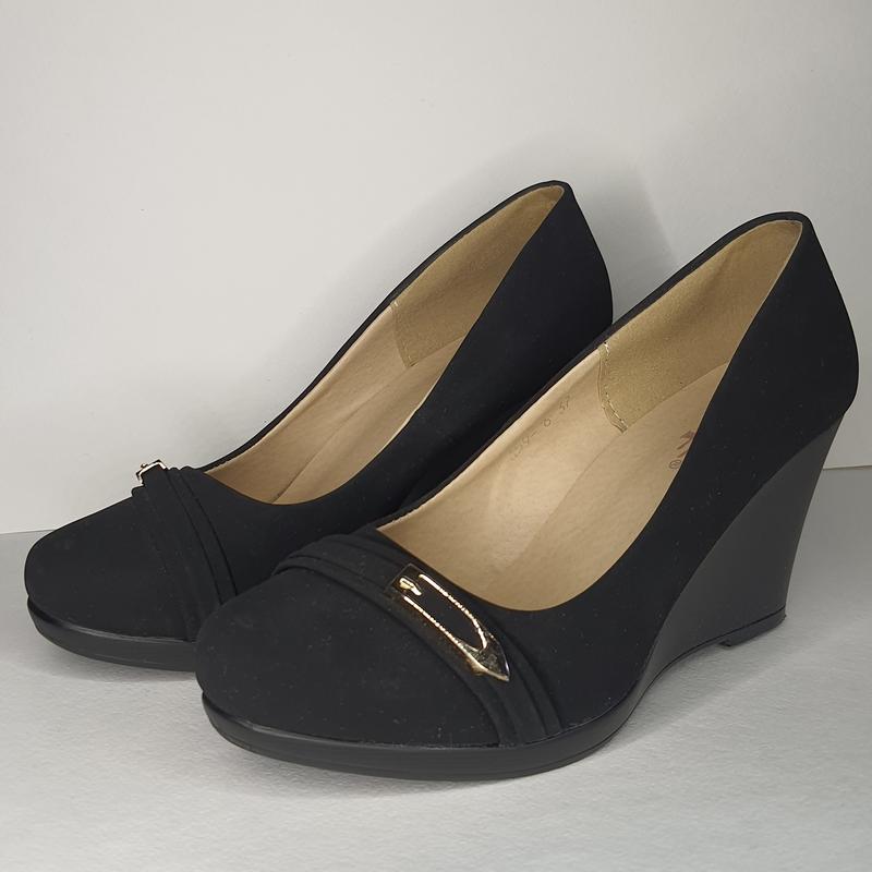 Туфлі на танкетці LF . Нубук. 37 розмір (повна довжина по устілці 23,5 см) Колір чорний. Ширина устілки в самому широкому місці - 7,5 см. Висота танкетки 8 см, висота платформи - 1 див. Практично нові, взуті раз (видно на фото устілки і підошви), в коробці. Недоліки відсутні.