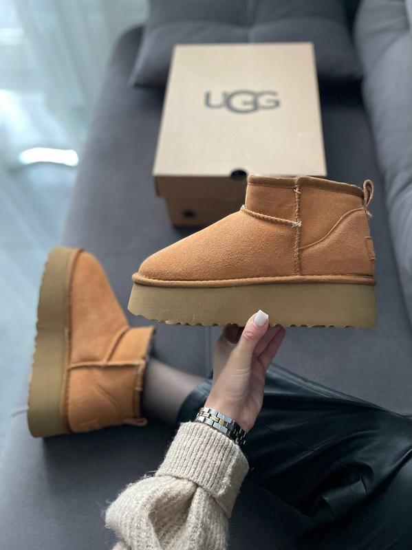 Замшеві уггі ультра міні на платформі, ugg ultra mini platform, овчина, ginger.