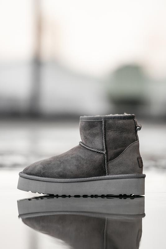 Женские замшевые угги мини, ugg ultra mini platform 3.5 см. серые, овчина. премиум