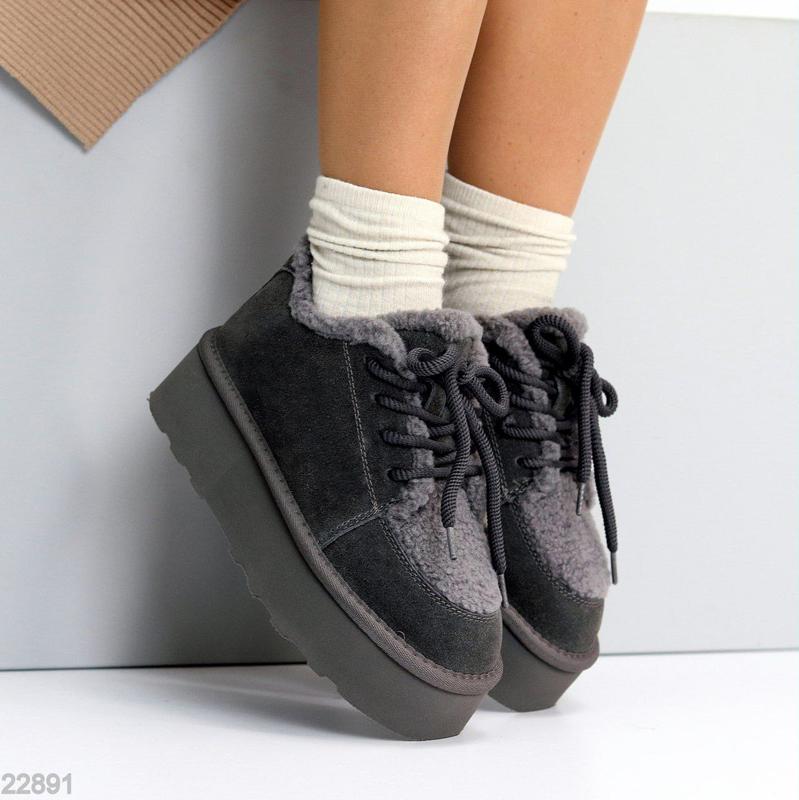 💫 Код 22891 Розміри 36-41 Уггі Матеріал - НАТУР. ЗАМША Всередині - НАТУР.ХУТРО НАБИВНЕ Сезон - Зима Колір - Сірий Висота від п’ятки - 9см Підошва - 5см/4см На середню стопу Розмір у розмір 36-23,5 37-24 38-24,5 39-25,5 40-26 41-26,5 ❤️‍🔥1750 грн