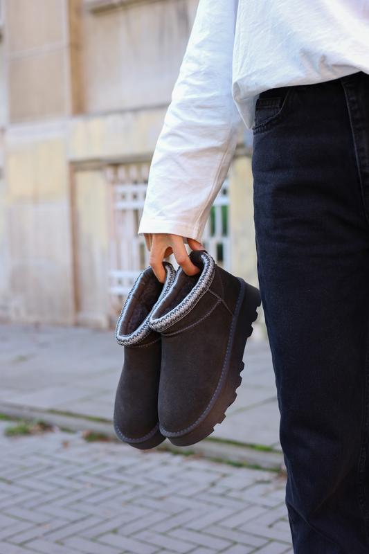 Запрошуємо вас ознайомитися з нашими найновішими жіночими уггами - ця вишукана пара стане відмінним вибором для тих, хто цінує комфорт та стиль. Виготовлені з натуральної замші, що робить їх дуже привабливими. Вони виглядають ідеально і підкреслюють ваш стиль і смак. Але головна перевага - це їхнє внутрішнє утеплення з натурального хутра. Вони стануть найкращими союзниками в зимовий період, надаючи вам тепло та комфорт. Легко поєднується з будь-яким стилем одягу та дозволить вам виглядати модно в зимову пору року. Ви завжди будете готові до пригод і зустрічей, маючи ці надійні та стильні угги. Розмірність моделі: маломірки Верх: натуральна замша Внутрішня підкладка: натуральне хутро Устілка: натуральне хутро Вага півпарку: 300 гр Висота халяви: 8 см Висота підошви: 2,5 см Підошва: ПУ Колір: сірий коричневий Виробник: Китай Розмірна таблиця: Довжина по устілці 36 розмір 23 см 37 розмір 23,5 см 38 розмір 24 см 39 розмір 24,5 см 40 розмір 25 см 41 розмір 25,5 см