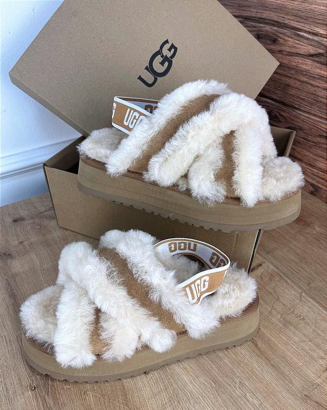 Жіночі уггі натуральна замш/овчина відкриті disco cross slides chestnut жіночі уггі