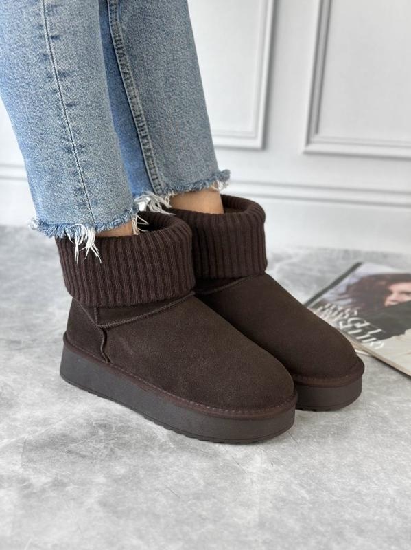 Уггі черевики з носочком зимові з хутром замшеві на платформі жіночі коричневі шоколадні ч...