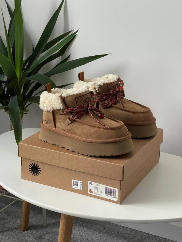 Шикарные зимние женские угги на платформе ugg funkarra platform chestnut замшевые рыжие