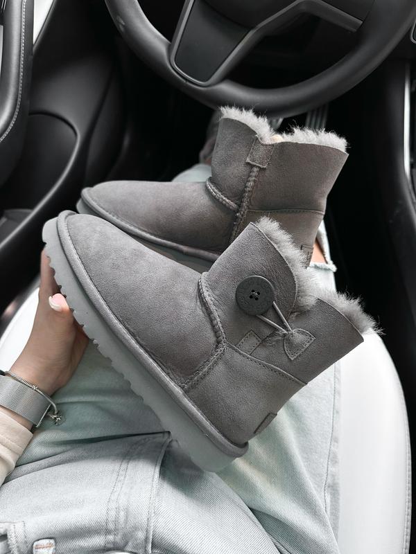 UGGBailey Button Grey Mini Виробник: Фабричний Китай Матеріали: Верх : натуральна замша Всередині натуральна ,цільна овчина по всій довжині Устілка з натуральної овчини Кожна пара оброблена водовідштовхуючою, що запобігає промоканню. Підошва : EVA (суцільна, мʼяка, не пропускає холод) Комплектація: чорна коробка UGG, наліпки, QR, пакувальний папір UGG, книжечка та картонна візитівка Розміри: 37