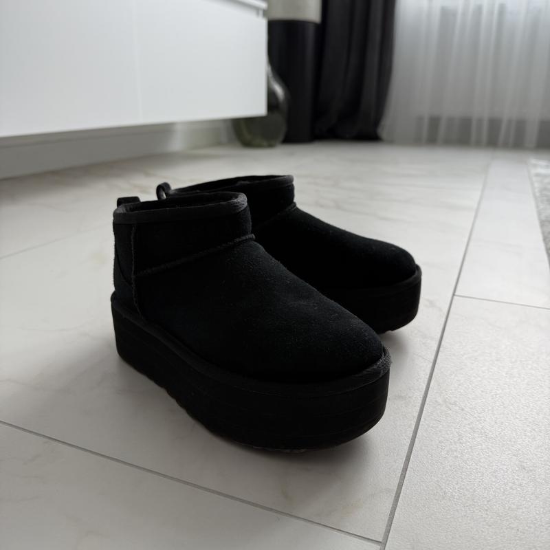 Зимові чоботи із колекції UGG. Модель виготовлено із замші. Про взуття: - утеплення внутрішньої частини взуття з поєднання високоякісної вовни і делікатного ліоцелл. - міцна та легка підошва виживає в нашій зимі легко. - висота платформи: 5,5 ст. - довжина устілки становить: 23 ст. Стан 9/10, щойно після хімчистки, відходили менше одного сезону, причина продажу: більше не подобаються.