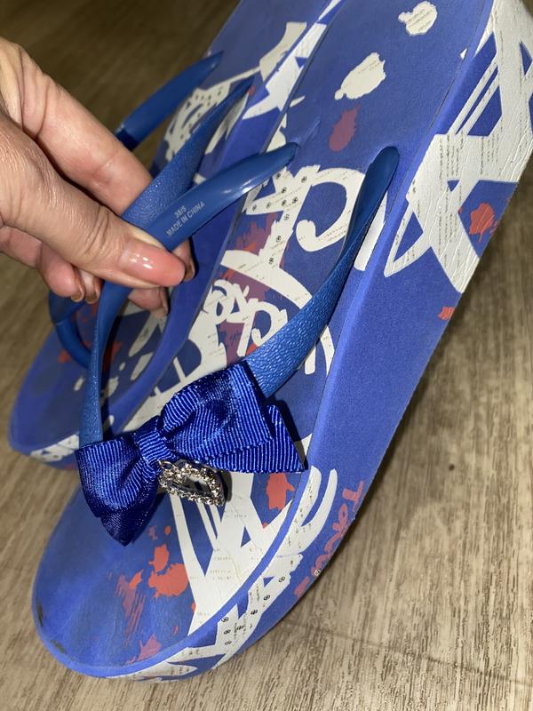 Классные летние вьетнамки Цвет: яркий, синий с белым Длина по съела- 24,5-25см Высота пяточки 2,5см Очень мягенькие и приятные в носке. Цена: 250грн Состояние очень хорошее Декор- бантики сердечки