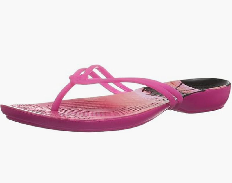 Crocs крокс вьетнамки шлепки шлепанцы womens isabella graphic candy pink tropical flip flo...