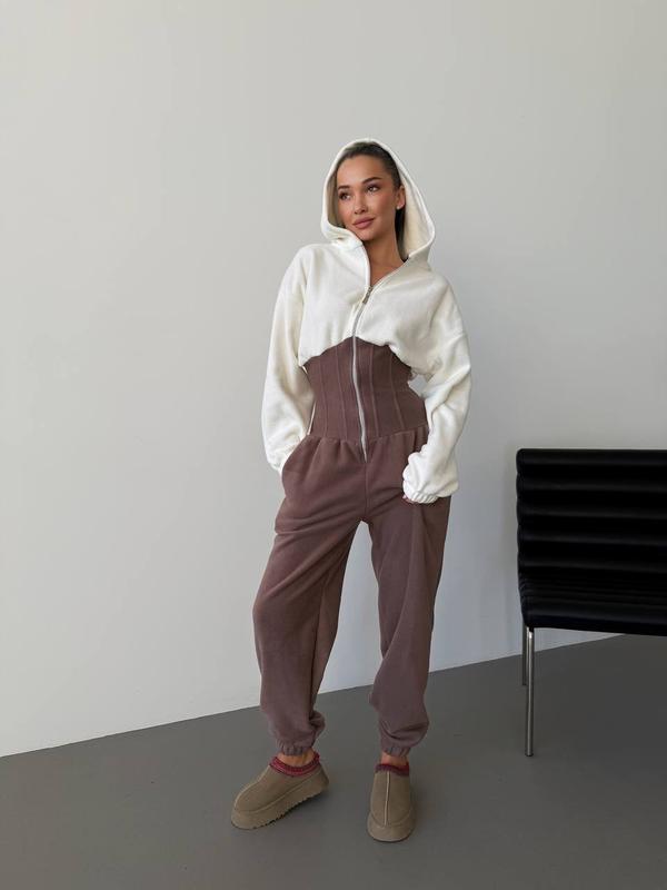 Комбінезон, фото реал✅ ⠀ ▫️Розміри: 42-44, 46-48( розм сітка на фото) ▫️Тканина: двосторонній полар фліс ▫️Кольори: чорний, сірий+білий, мокко+білий ⠀ Модель 184 ‼️Безопасної оплати немає ,є накладний платіж з передплатою‼️ Відправка 2-4дні Є обмін розміру
