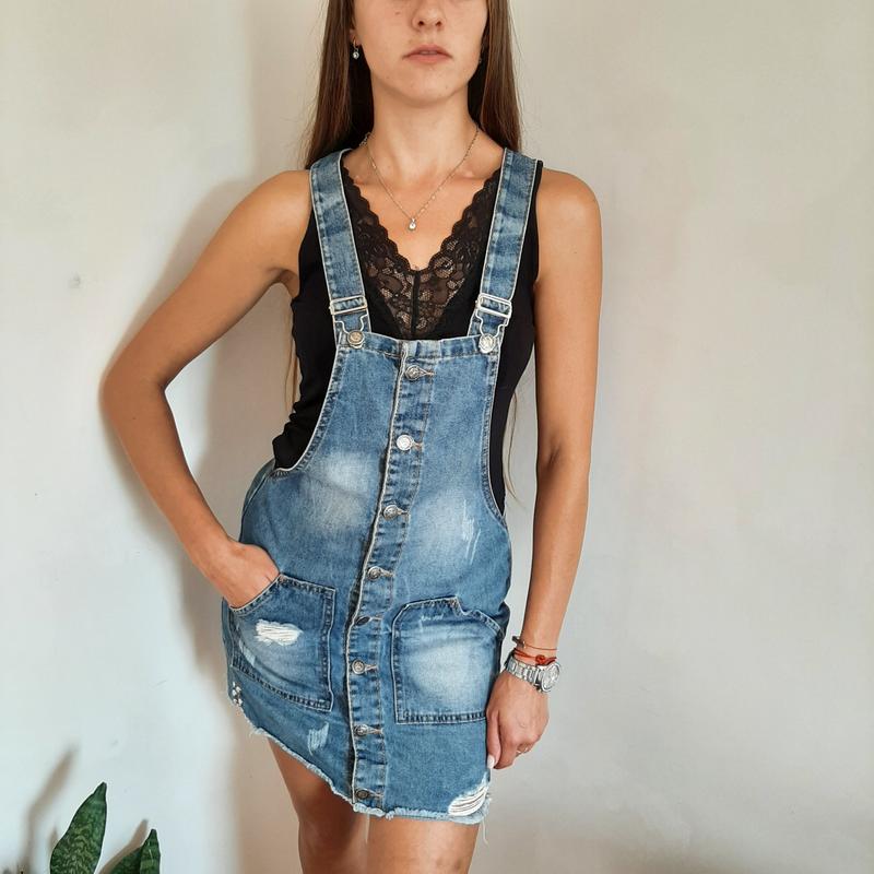 Класний джинсовий комбінезон зі спідницею юбкой стильний модний трендовий