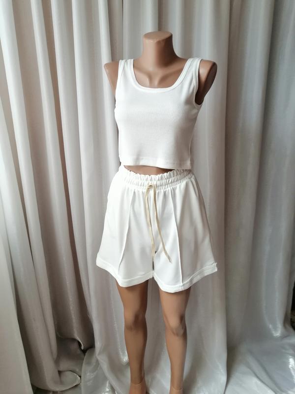 Літній костюм комбінезон напівпрозорий топ у рубчик і шорти висока посадка