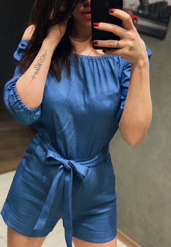 Легкий, джинсовий комбінезончик на літо. В ньому не жарко, він не парить!!! Ремешое знімний, на кокетці, талії і рукавах є резиночка. У розмірі 42 ОГ 88-98 см, довжина 65 см, в розмірі 44 ОГ 94-104 см, довжина 68 см