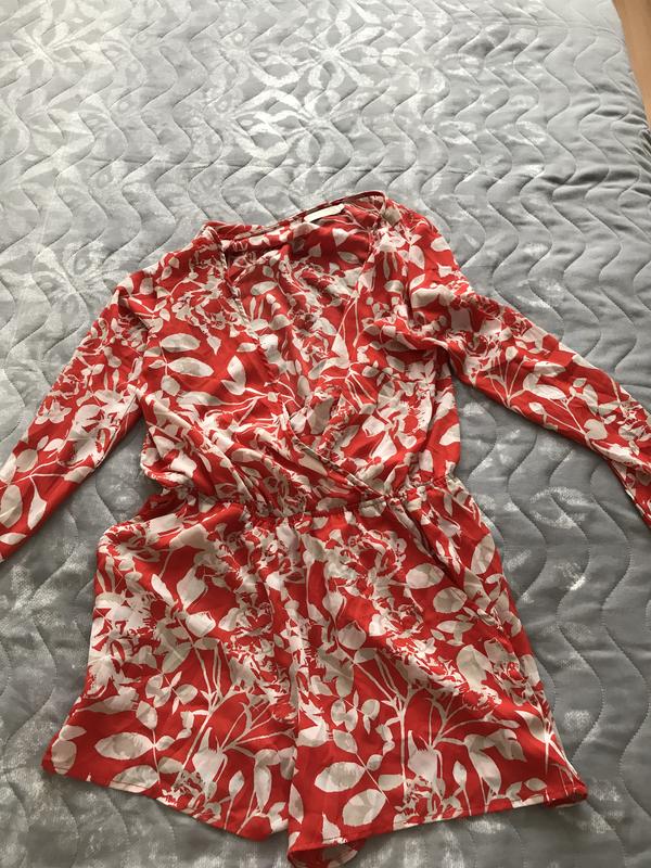 Отличный красный комбинезон в трендовый принт. Размер указал L, но лучше на М. Параметры подойдут до 110-80-110.